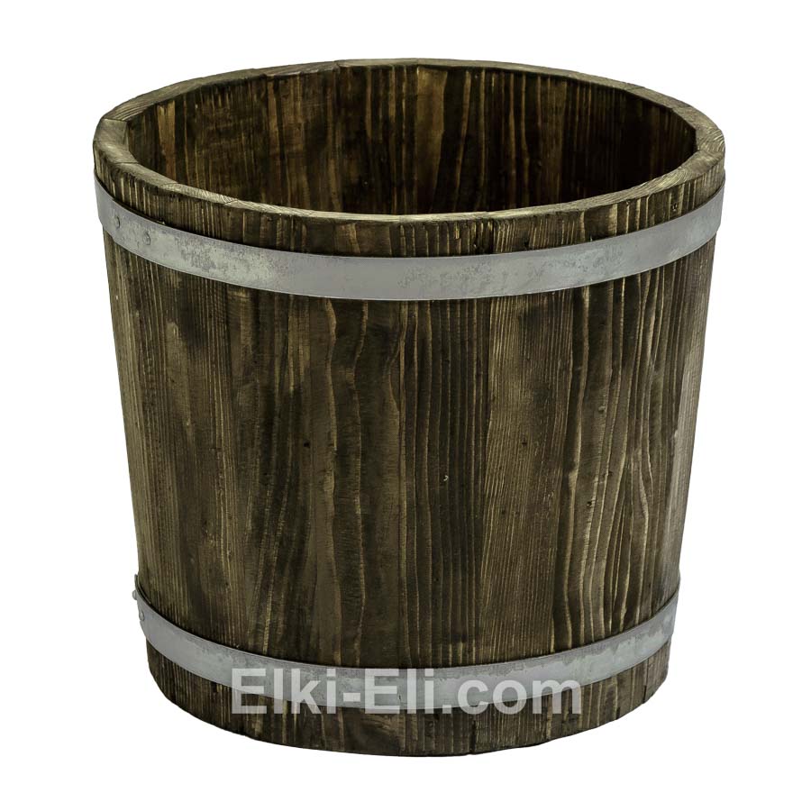 Декоративная кадка имеет цилиндрическую форму, изготовлена из массива сосны. Обруч выполнен из оцинкованной стали. Дерево обработано с эффектом состаривания. Оптимальное решение уличных для веранд, зимних садов, ресторанов и офисов.<br /> Объём: 39 л<br /> Размеры:<br /> Высота - 39 см<br /> Нижний диаметр - 37 см<br /> Верхний диаметр - 43 см<br />