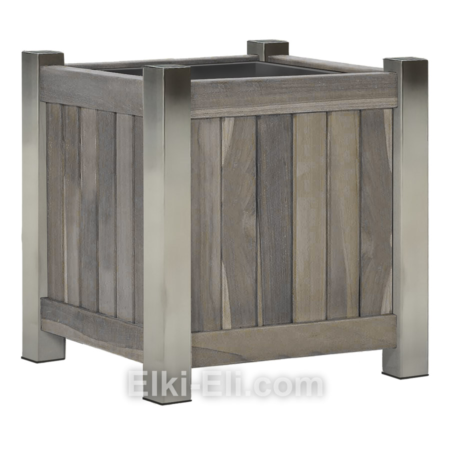 Вазон имеет квадратную форму, изготовлен из массива лиственницы и нержавеющего металла. Металлический каркас и металлические ножки делают вазон очень прочным. Оптимальное решение для уличных веранд, зимних садов, ресторанов и офисов.