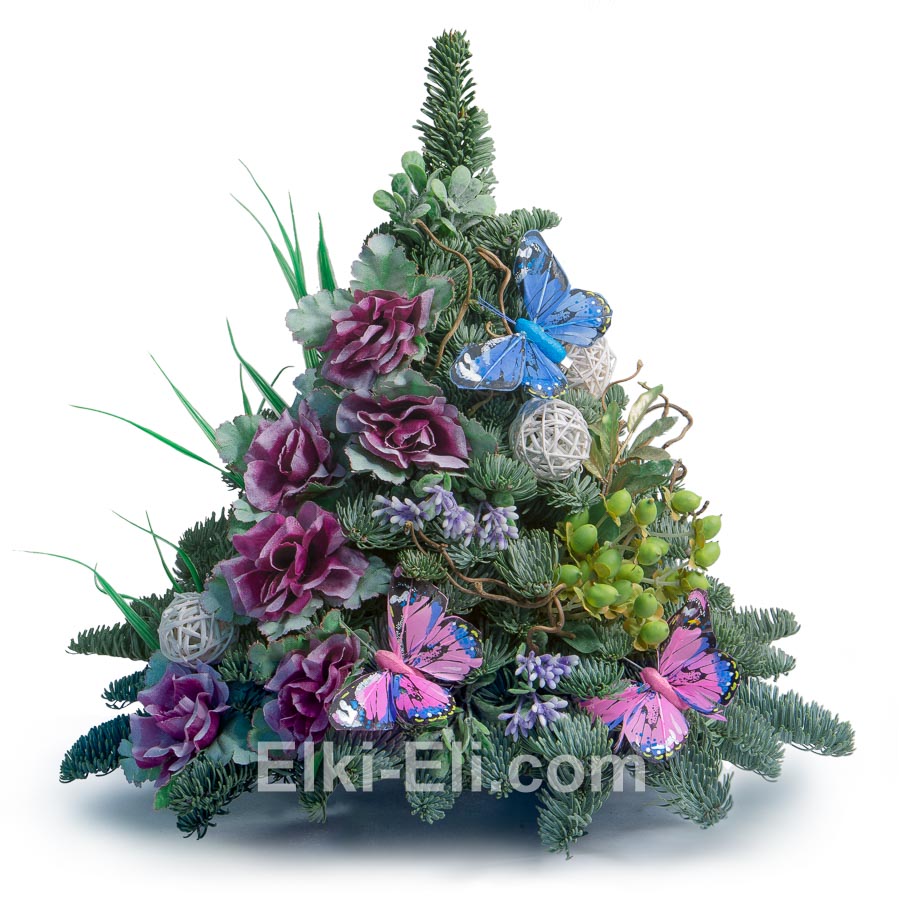 Настольная дизайнерская елочка премиум-класса – уникальная композиция, выполненная из живых веток пихты Нобилис, украшенная нарядными цветами и бабочками, а также сверкающей гирляндой. Размеры елочки 40-60 см. Дизайн может быть по желанию Заказчика видоизменён.