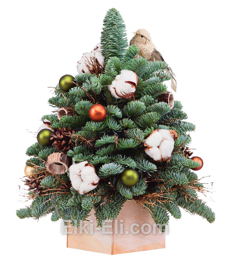 Настольная дизайнерская елочка премиум-класса – уникальная композиция, выполненная из живых веток пихты Нобилис, украшенная оригинальными новогодними игрушками, а также сверкающей гирляндой. Размеры елочки 40-60 см. Дизайн может быть по желанию Заказчика видоизменён.