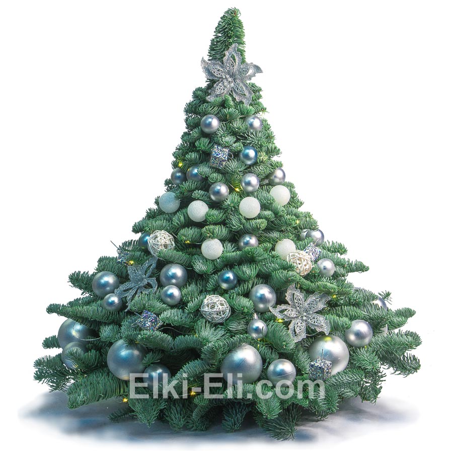Глядя на это роскошное дизайнерское творение, кажется, будто сам Нептун и его красавица-дочь Русалочка щедрым жестом набросили на пушистые веточки горсть шикарного морского жемчуга. По всей кроне этого очаровательного рождественского деревца аккуратно размещены праздничные шары разных размеров – как гладкие серебристые, так и матовые шарики нежного белого оттенка. В голубовато-зеленом лапнике пихты прячутся удивительные сверкающие кристаллы и золотистые бусинки новогодней гирлянды. На нижних ветвях, а также у самой верхушки раскрыли свои лепестки волшебные цветы. Елочка станет главным украшением новогоднего интерьера, создавая настроение настоящего таинства своим мерцающим серебристым оттенком. Зимняя прохлада кажется такой нежной и приятной рядом с этим трогательным деревцем. Праздничная композиция гармонично дополнит Ваши тихие зимние вечера в кругу семьи. Ведь так приятно смотреть на серебристое жемчужное очарование, вспоминая ласковые прикосновения морских волн и восхитительную белизну песчаного пляжа. И хочется верить, что в ракушках, добытых будущим летом из синего моря, обязательно найдется хрупкая серебряная жемчужина, подобная этим блестящим шарам. Рождественское деревце прекрасно дополнит дизайн небольшого офиса или холла отеля, а также будет отличным подарком, который принесет много радости и счастливых минут ожидания новогодних чудес.