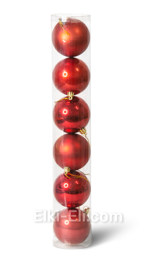 Тубус Игрушки новогодние шары (6 шт, красные), глянцевые, однотонные, ⌀ 8 см