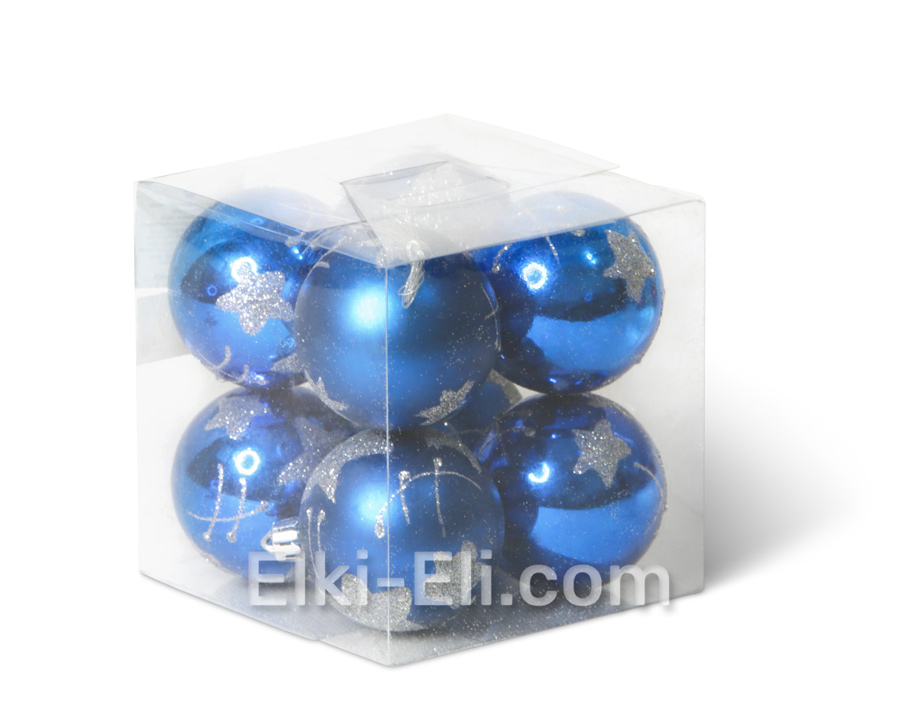 Коробки (кубы) Игрушки новогодние шары (6 шт, синий), глянцевые и матовые, звезды, ⌀ 5,5 см