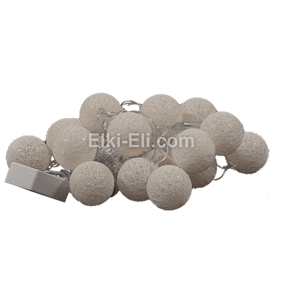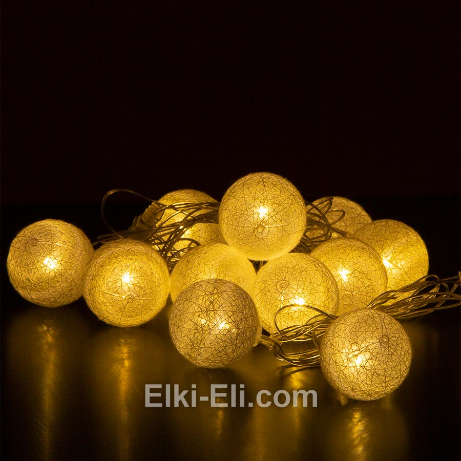 Гирлянда светодиодная с питанием от сети (220 V), 3 м<br /> Диаметр шариков: 4 см<br /> Цвет шариков: белый<br /> Испускаемый свет: теплый белый<br /> Провод с прозрачной силиконовой обмоткой<br /> Количество шариков: 20 шт.<br />