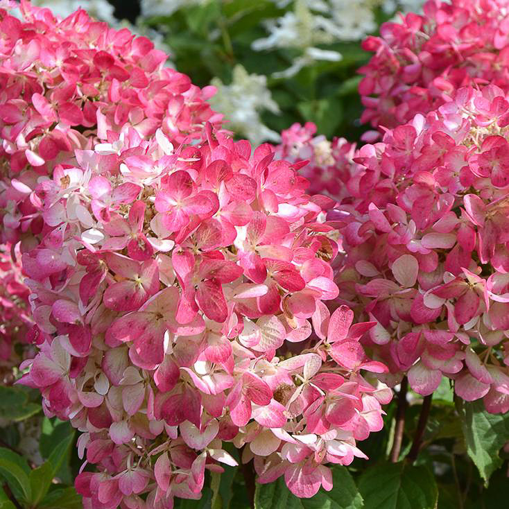 Гортензия метельчатая Pink Diamond (Hydrangea paniculata 'Pink Diamond') — изысканный сорт с крупными метельчатыми соцветиями, которые в начале цветения кремово-белые, а к осени приобретают насыщенно-розовый оттенок. Один из самых декоративных и устойчивых сортов, прекрасно подходит для солитерных и групповых посадок, аллей и живых изгородей.