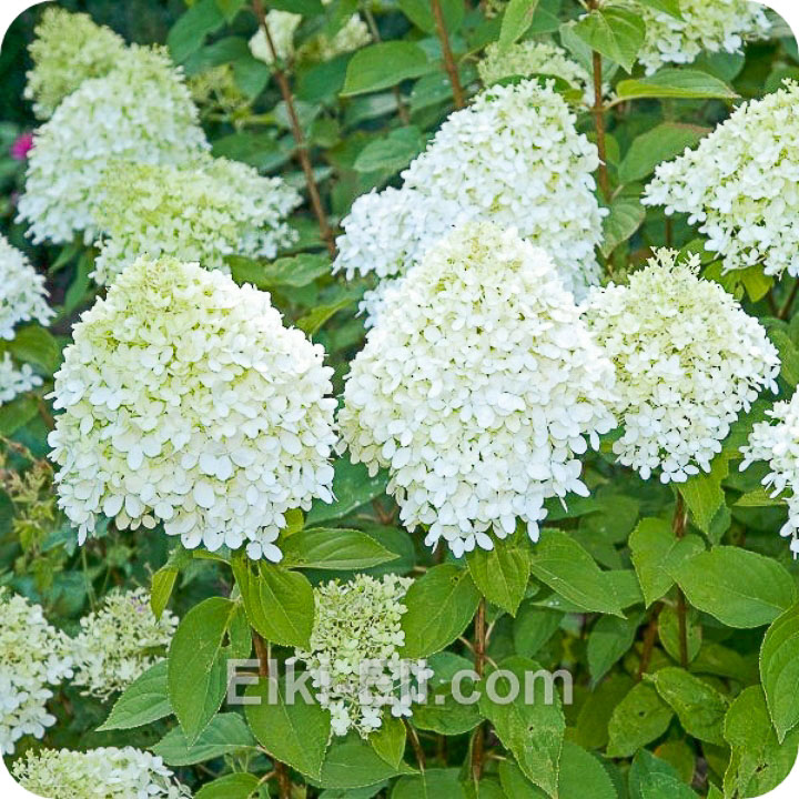 - Воздушные, декоративные соцветия белого цвета, которые розовеют к осени