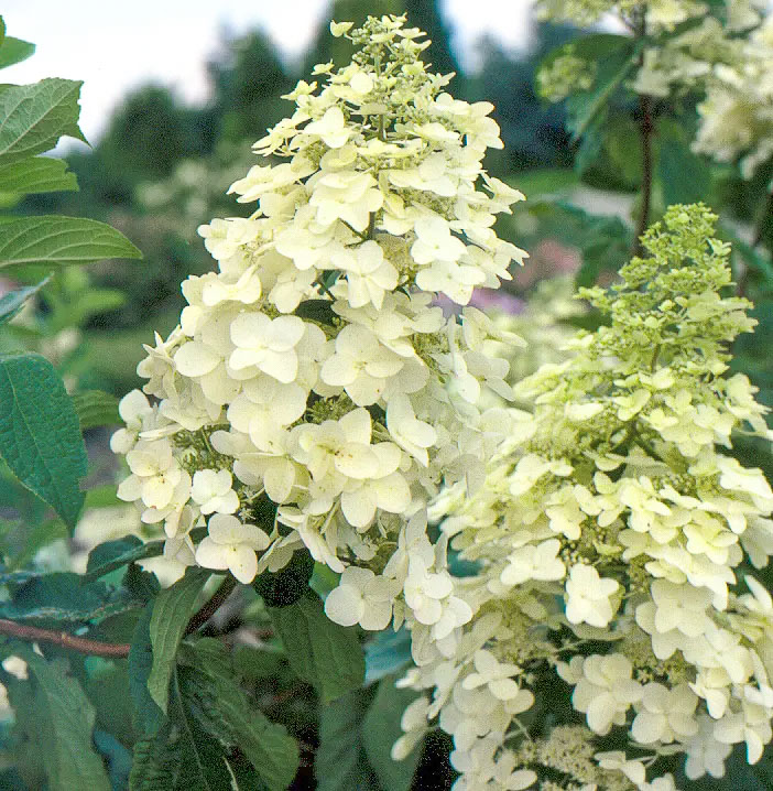 Гортензия метельчатая Unique (Hydrangea paniculata 'Unique') — крупный листопадный кустарник с выразительными соцветиями конической формы, цветущими с середины лета до осени. Сорт ценится за обильное цветение, изысканный кремово-белый цвет бутонов и постепенное розовое окрашивание к осени. Отлично подходит как солитер, для живых изгородей, групповых и одиночных посадок.