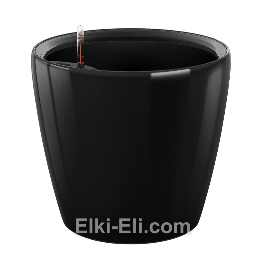 Кашпо с наличием уровня залива воды. Для контроля количества воды в горшке предусмотрен поплавковый индикатор.<br /> Цвет: черный, блестящий.<br /> <br /> Размеры (внешний диаметр/высота):<br /> 3,0 л - Ø 22 x 20 см<br /> 7,0 л - Ø 28,5 x 26 см<br /> 13 л - Ø 36 x 32,5 см<br /> 28 л - Ø 43,5 x 39,5 см<br /> 40 л - Ø 49,5 x 46,5 см