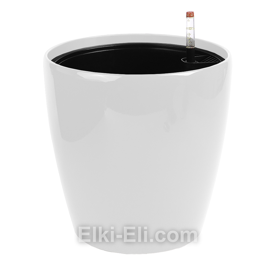 Кашпо «Лезуза Гамма».<br /> Материал: пластик.<br /> Есть поплавковый индикатор уровня залива воды.<br /> Доступные объёмы: 6,5 л, 17 л, 33 л.<br /> Цвет: белый глянцевый.