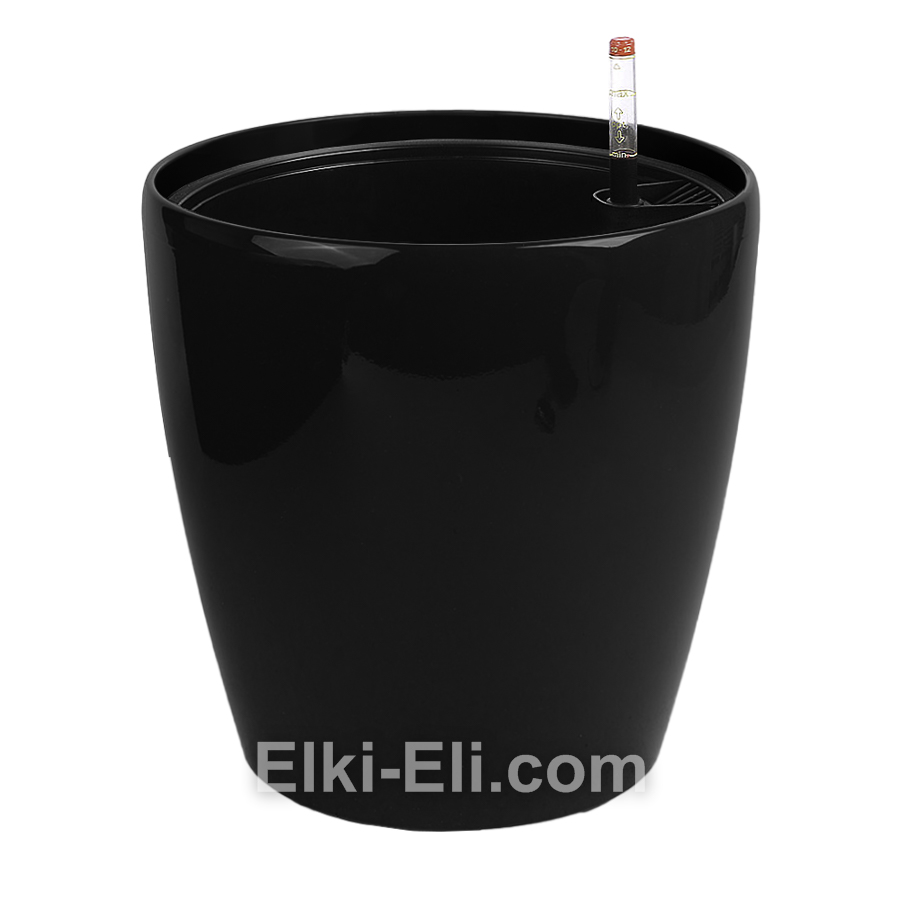 Кашпо «Лезуза Гамма».<br /> Материал: пластик.<br /> Есть поплавковый индикатор уровня залива воды.<br /> Доступные объёмы: 6,5 л, 17 л, 33 л.<br /> Цвет: чёрный глянцевый.