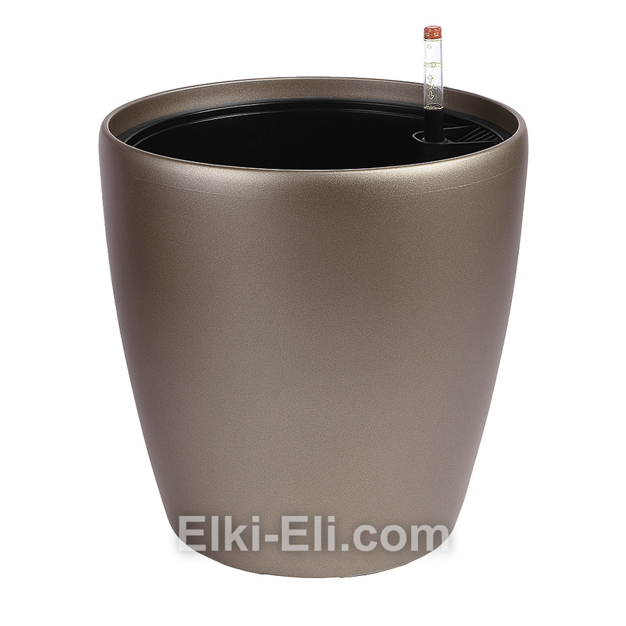 Кашпо «Лезуза Гамма».<br /> Материал: пластик.<br /> Есть поплавковый индикатор уровня залива воды.<br /> Доступные объёмы: 6,5 л, 17 л, 33 л.<br /> Цвет: розовое золото матовый.