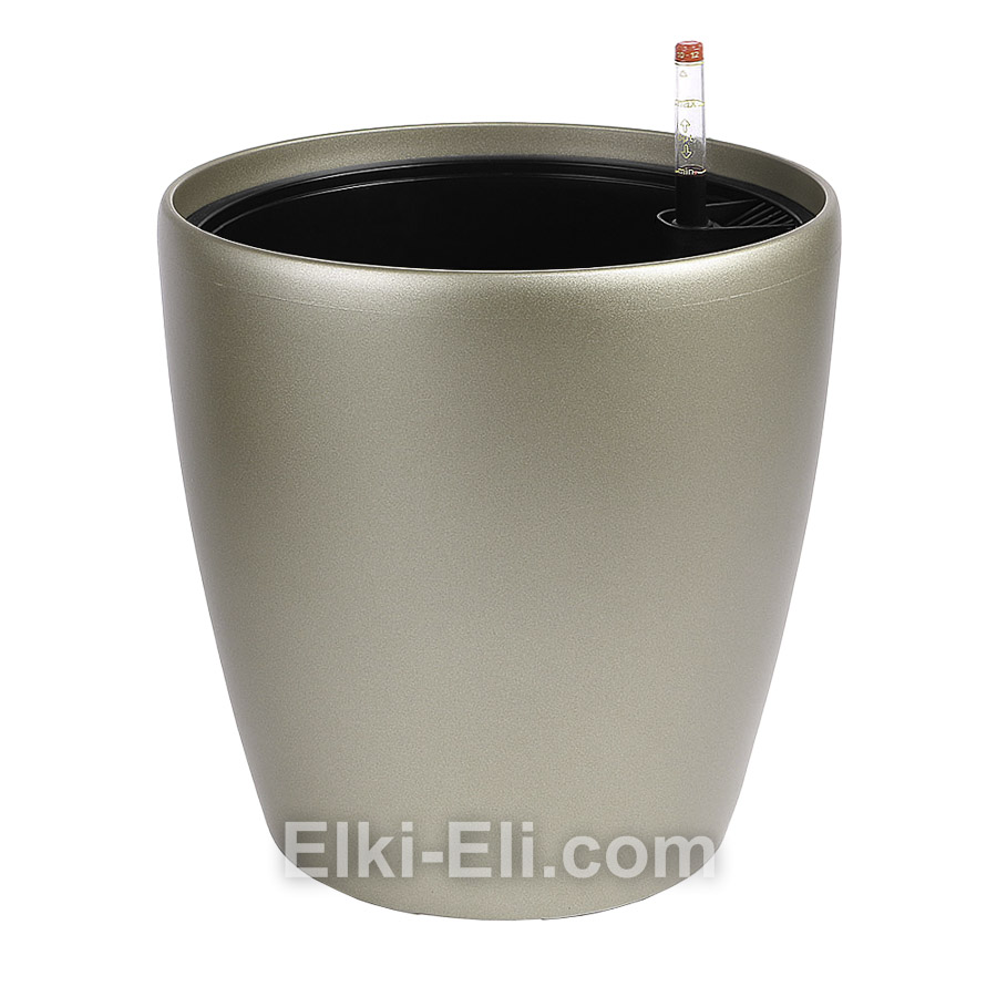Кашпо «Лезуза Гамма».<br /> Материал: пластик.<br /> Есть поплавковый индикатор уровня залива воды.<br /> Доступные объёмы: 6,5 л, 17 л, 33 л.<br /> Цвет: золотой матовый.