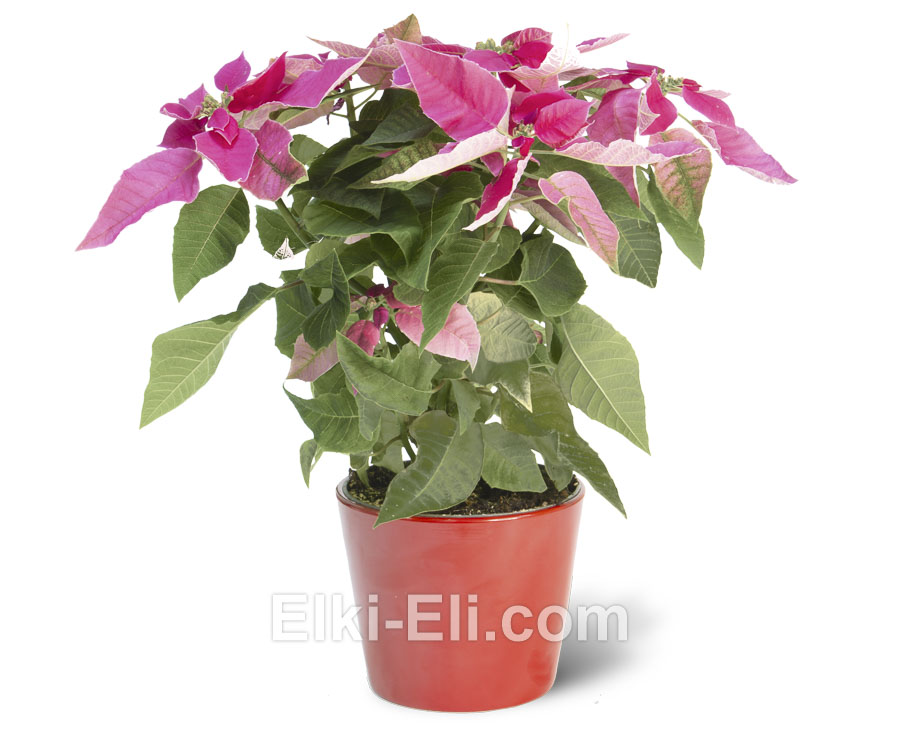 Пуансеттия розовая в керамическом кашпо