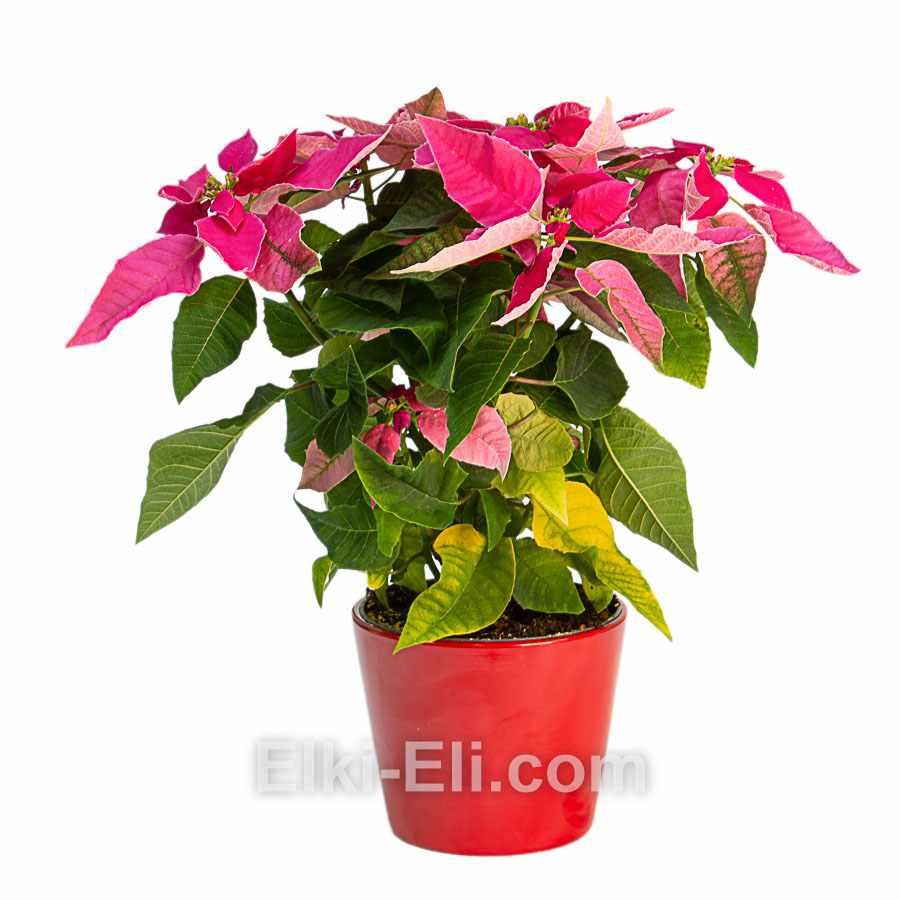 Цветущая Рождественская звезда, наряду с традиционными хвойниками, является главным украшением комнаты и праздничного стола в канун новогодних праздников.<br /> Цвет: розовая<br /> Кашпо: керамическое кашпо (красное)<br /> <br />