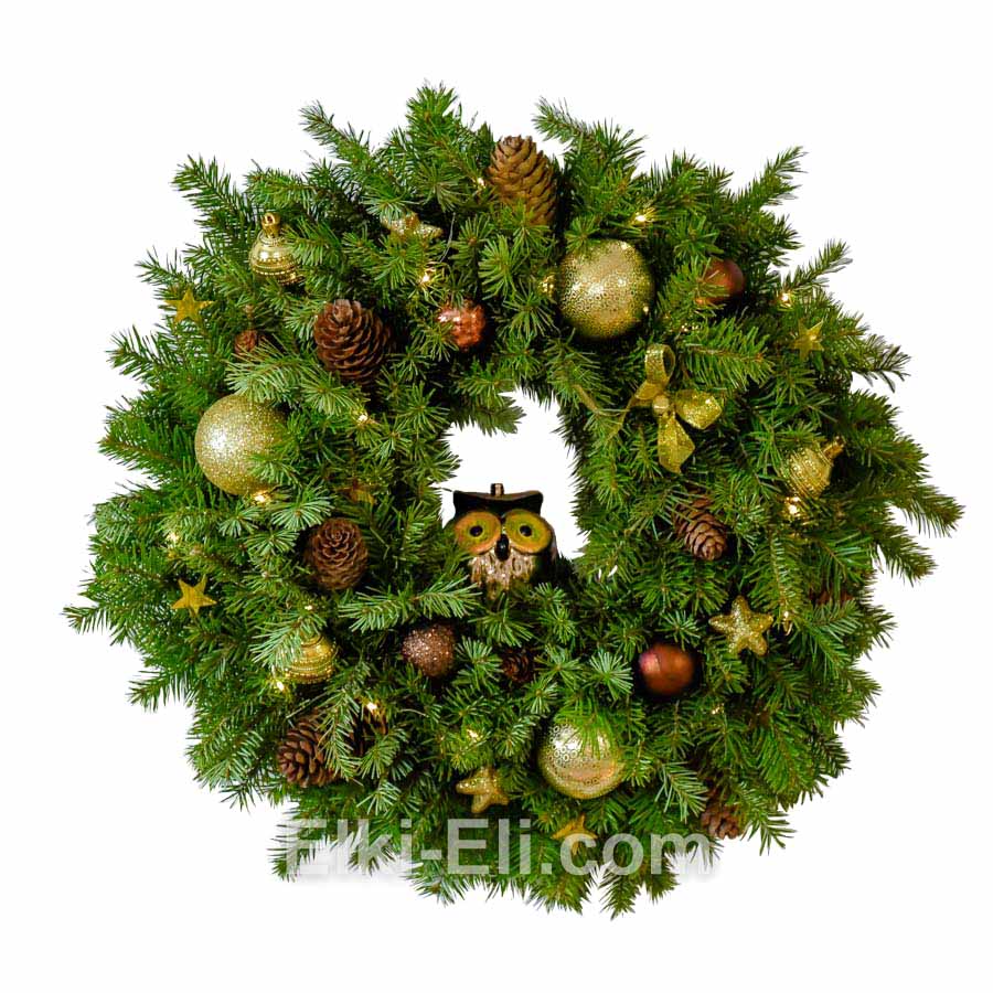 Рассматривая новогодний венок «Волшебный лес», погружаешься в атмосферу сказки. В густой кроне, на пушистой ветке притаилась мудрая сова. Она знает все. Знает, что ждет Вас в Новом году. Сову окружают золотистые шарики, звездочки, бантики – символы благополучия, богатства, взаимосвязей. Сочетание зеленого и золотого, солнечного цвета добавляет уюта интерьеру, расслабляет и улучшает настроение. Терракотовые шишки и шарики напоминают о земле, они смягчают сияние золота, расставляют акценты и делают композицию завершенной. Основа венка – лапник пихты Сибирской - отличается приятным зеленым цветом, насыщенным с цитрусовыми нотками, ароматом и долгой декоративностью. Декоративные элементы стабилизированы, поэтому венок не доставит хлопот.