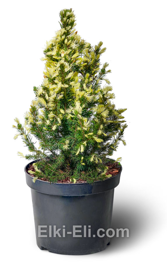 Ель канадская ‘Daisy's White’ – это идеальный выбор для создания праздничной атмосферы в новогодние дни. Её компактная коническая форма и густая, насыщенно-зелёная хвоя делают дерево великолепным акцентом в интерьере или на улице. Кремово-белые приросты появляются только весной, поэтому зимой дерево будет выглядеть просто зелёным, практически неотличимой от очень популярной ели Коника.